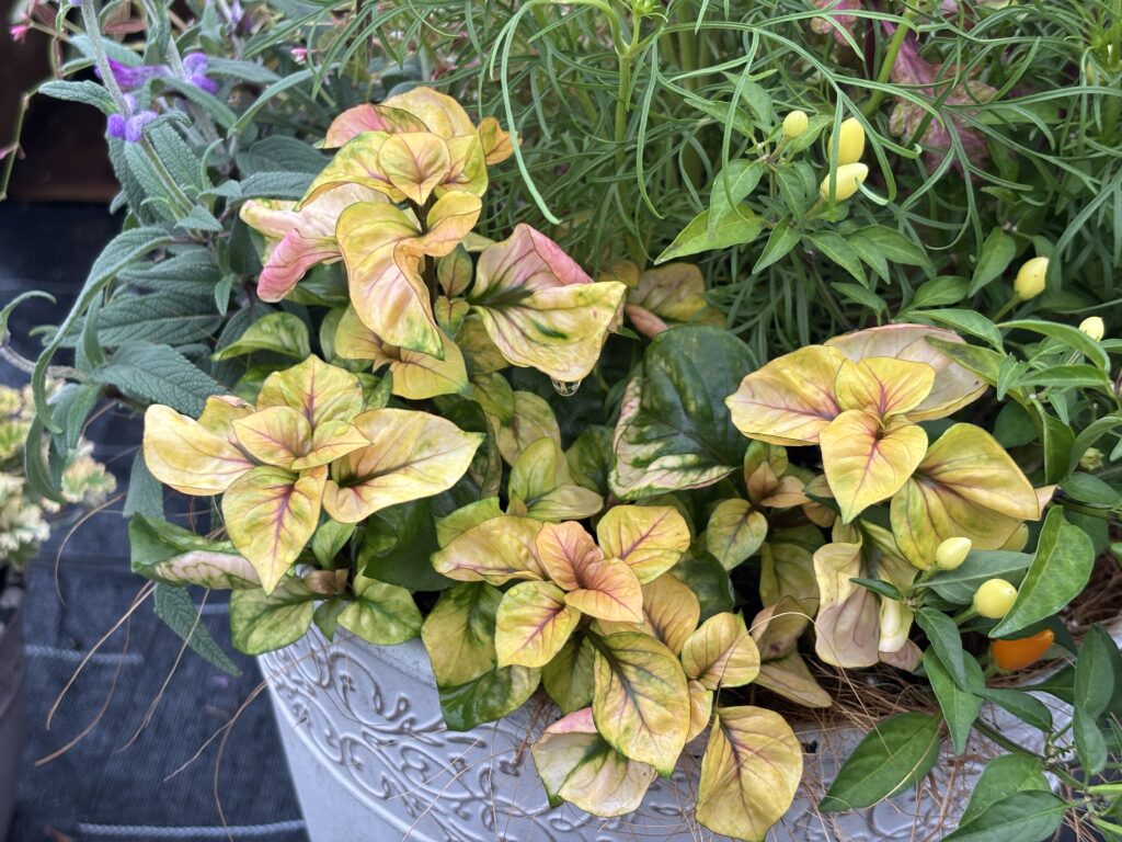 秋の寄せ植えのリーフになんでも合います。