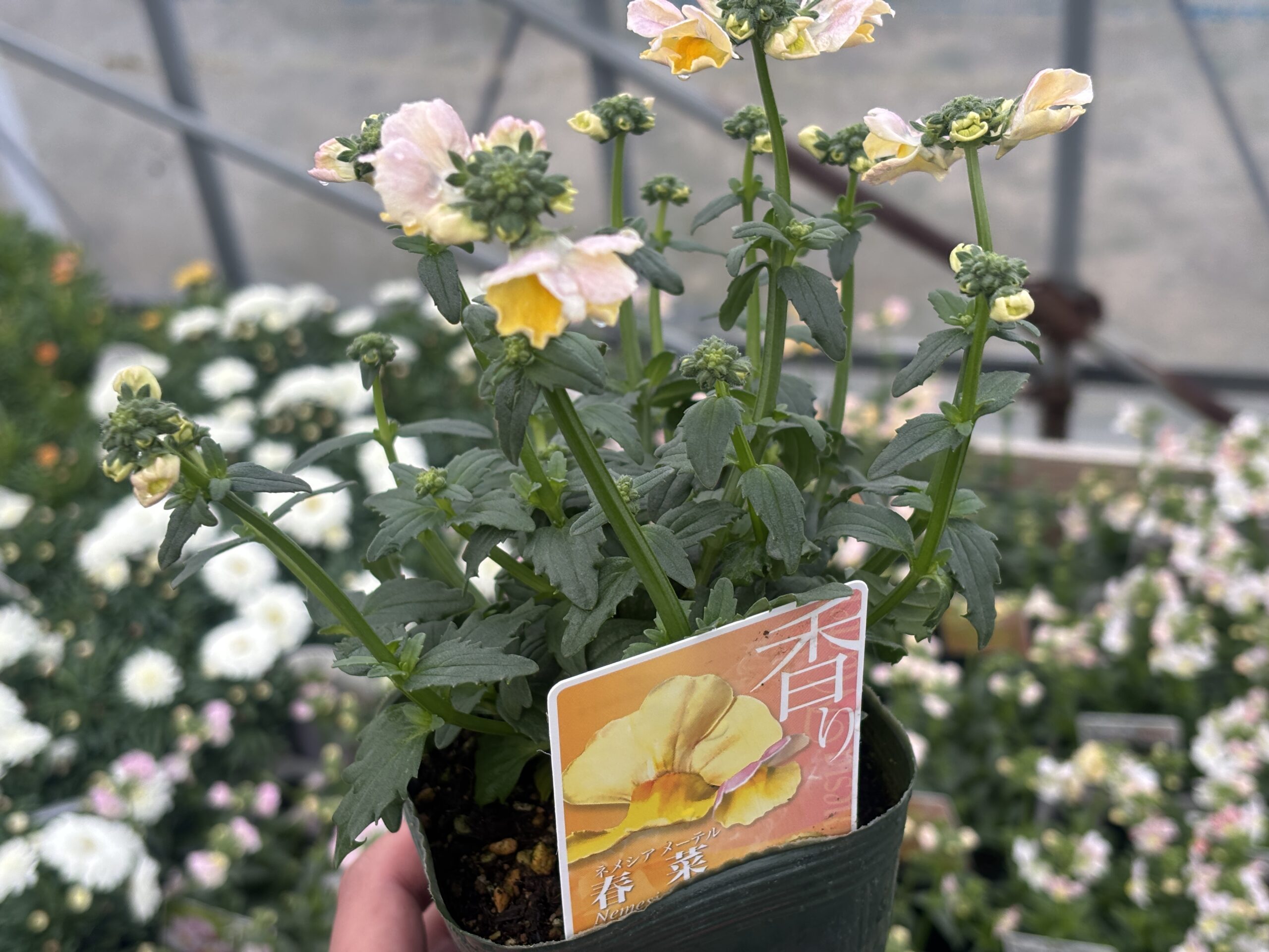 ネメシア’メーテル春菜’ 2026 2/03 お花屋さんの花図鑑 2026年2月3日学名Nemesia ’Maetel Haruna’園芸分類半耐寒性常緑多年草ゴマノハグサ科 ネメシア属木丈〜30cm生育環境日照 : 日向 耐寒性 : やや強い 耐暑性 : 普通 花期:通年(夏季は休みます。) お花屋さんの花図鑑 この記事が気に入ったら フォローしてね! Follow Me よかったらシェアしてね! URLをコピーしました! URLをコピーしました! ネメシア’フラミンゴ’ 関連記事 ネメシア’フラミンゴ’ 2026年1月23日 ネメシア’フェアリーマーブルピンク’ 2026年1月23日 ネメシア’メーテル グッピー’ 2026年1月18日 ネメシア’メーテル スノースワン’ 2026年1月18日 nanagarden 2026.1.11 入荷情報 2026年1月11日 nanagarden 2026.1.9 入荷情報 2026年1月9日 オステオスペルマム’ブルーアイビューティー’ 2026年1月6日 ディモルフォセカ’パステリーナ’ 2026年1月6日 コメント コメントする コメントをキャンセルコメント ※名前 ※ メール ※ サイト 次回のコメントで使用するためブラウザーに自分の名前、メールアドレス、サイトを保存する。
