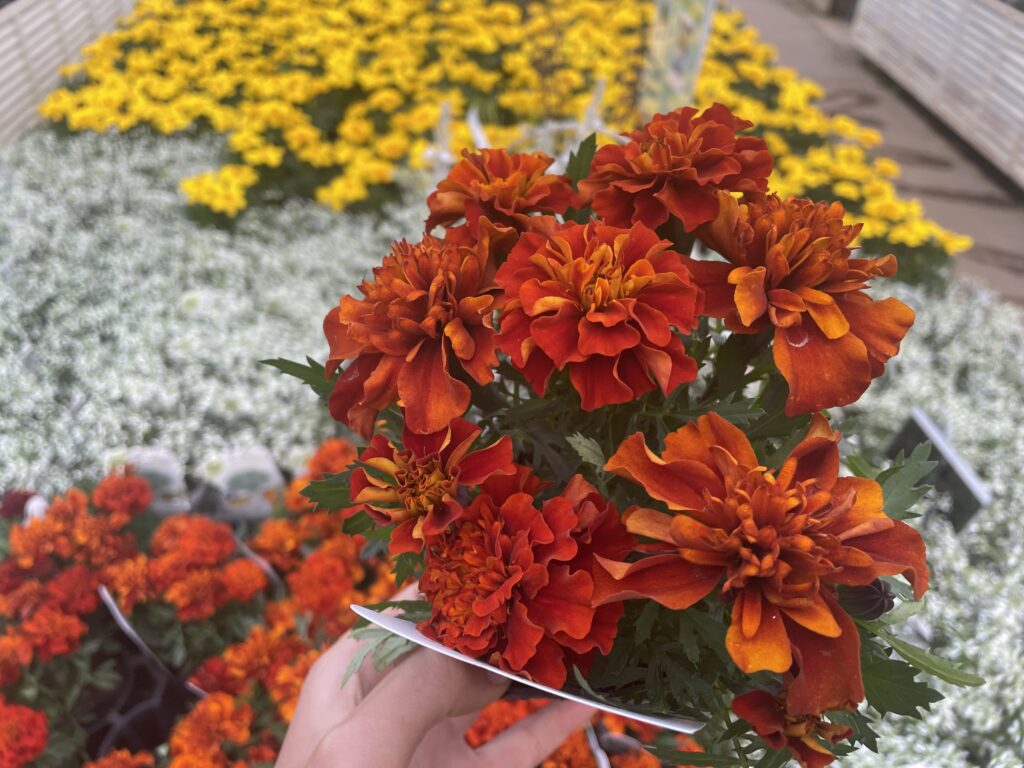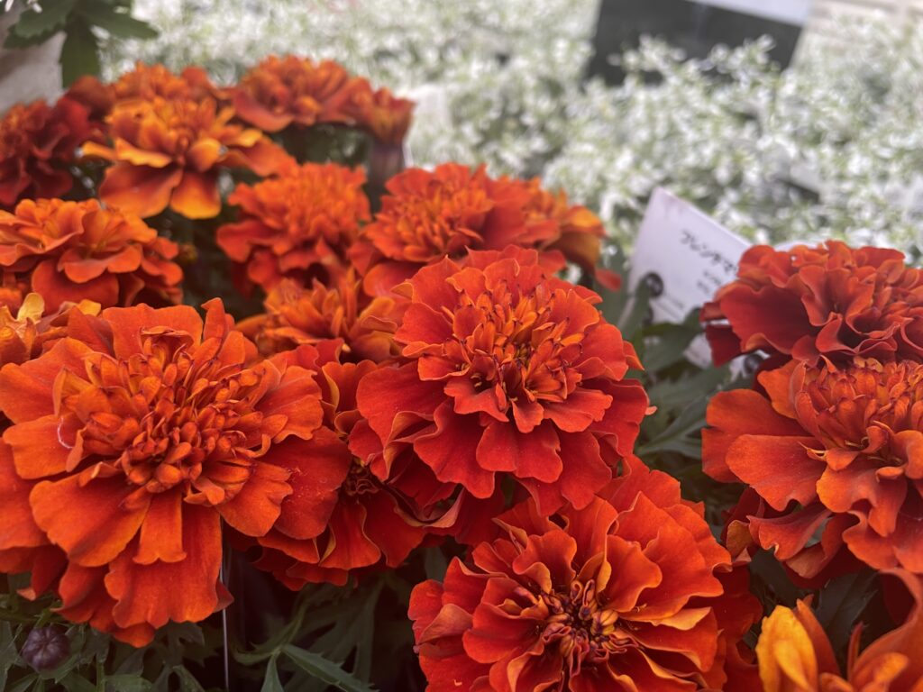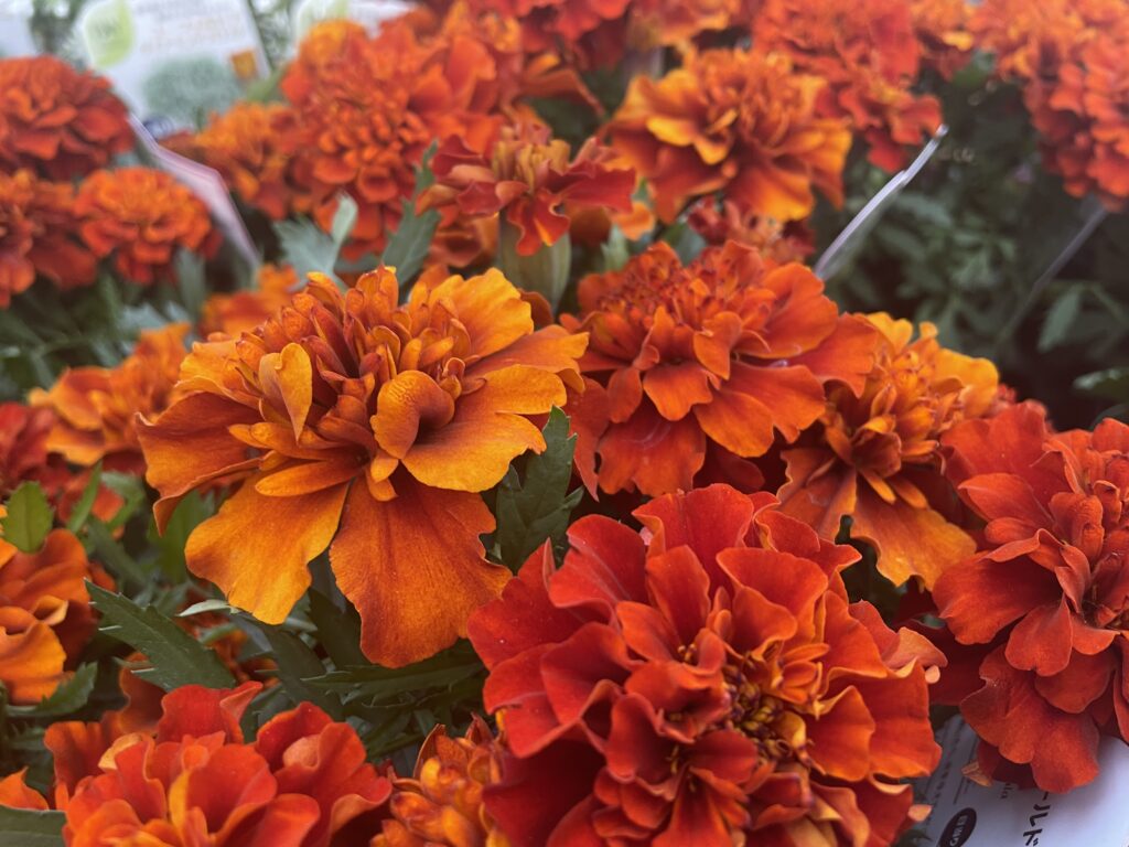 マリーゴールドといえば春〜夏のイメージですが秋に気温が落ちてくるとより発色が良くなっていきます。